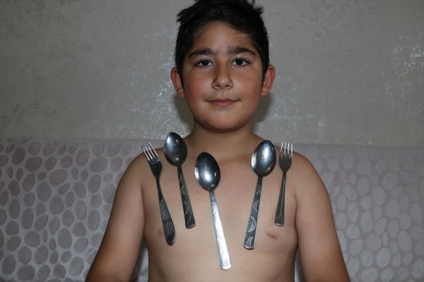 Batman'da yaşayan 12 yaşındaki 5. sınıf öğrencisi Emin Okur'un, vücudu metalleri mıknatıs gibi çekiyor.