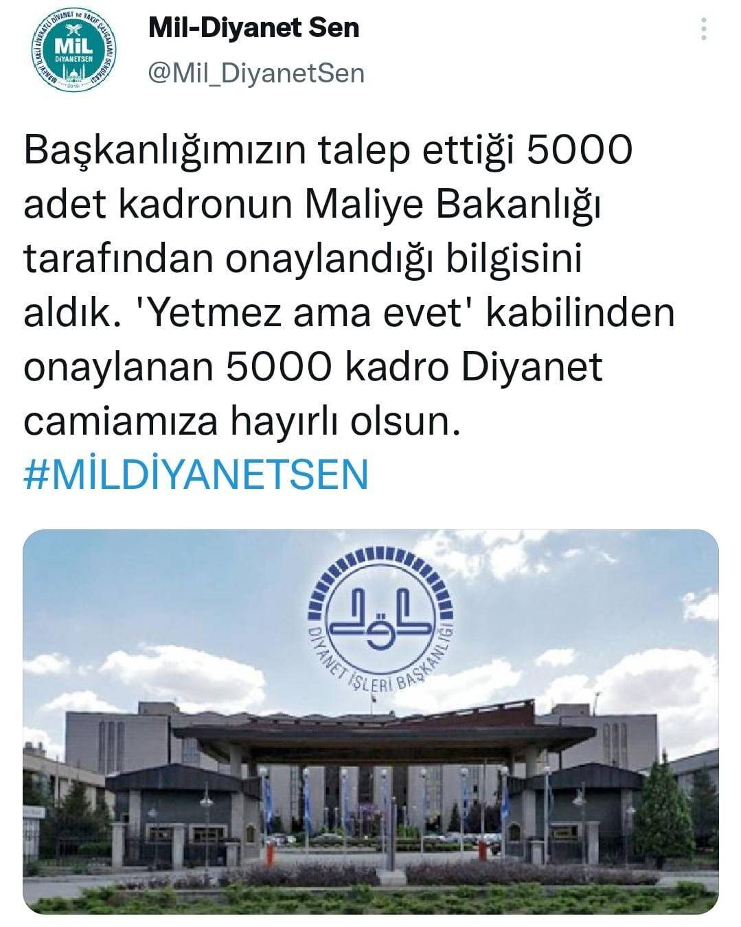 Mil Diyanet-Sen sosyal medya hesabı üzerinden müjdeli haberi verdi.