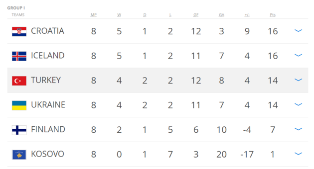 Türkiye'nin Hırvatistan'ı yenmesi İzlanda'nın da Ukrayna karşısında galibiyet alması sonrası grupta hesaplar karıştı. Hırvatistan ile İzlanda 16 puanla liderliği paylaşırken Ukrayna ile Milli Takımımız 14 puanla zirve takibinde...