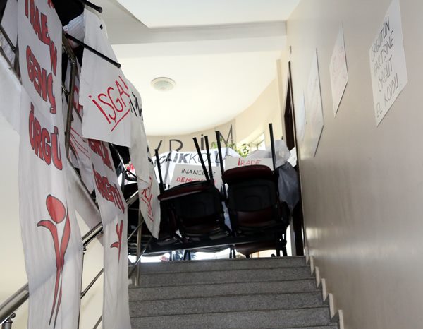 İşhanının dış cephe duvarına da "CHP Trabzon işgal edilmiştir" yazılı afiş asan gruptakiler, geceyi parti binasında geçirdi.
