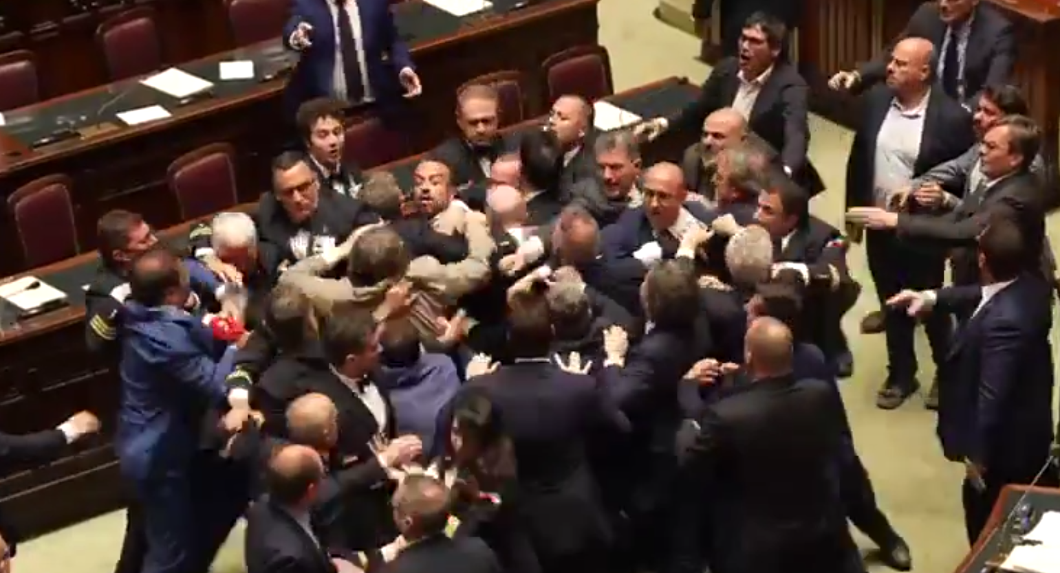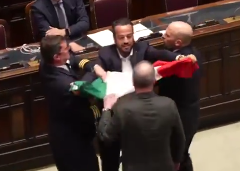 İtalya parlamentosunda kavga çıktı. M5 milletvekili özerklik bayrağı açınca diğer milletvekillerinden yumruk yedi.