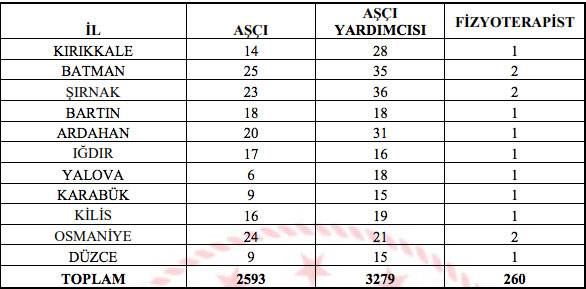 Fizyoterapist, aşçı ve yardımcısı atama sonuçları