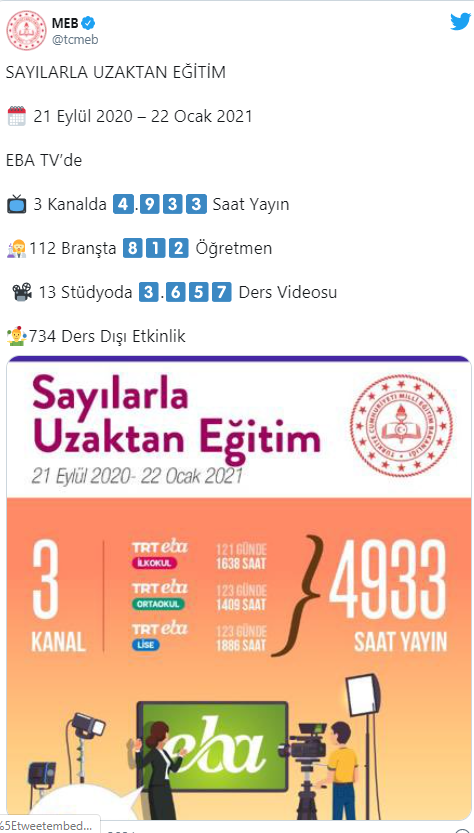 Milli Eğitim Bakanlığı'nın sosyal medya hesabından uzaktan eğitim ve EBA'ya ilişkin son dakika paylaşımı yapıldı.