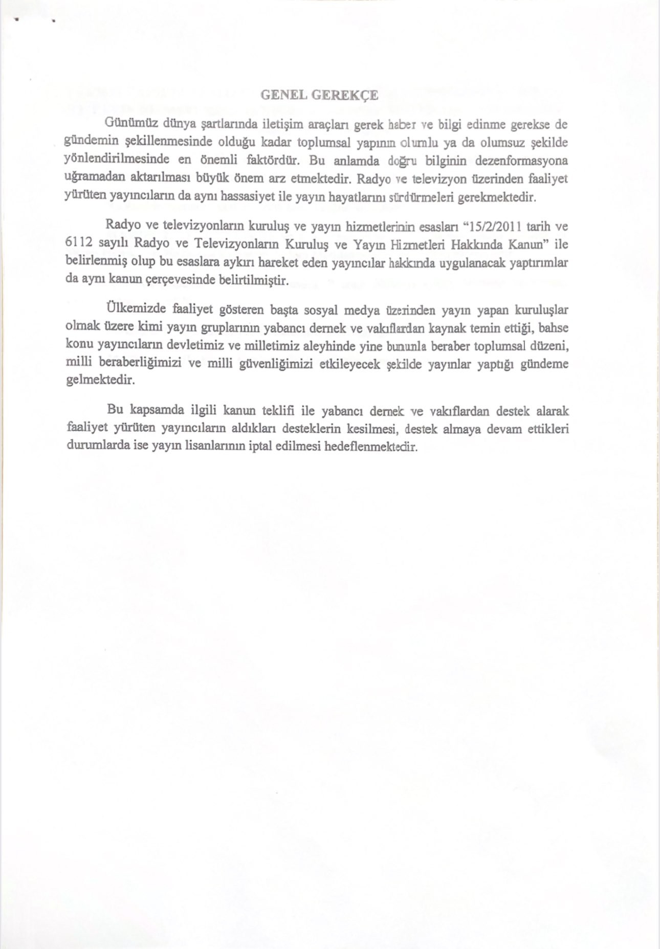 “Son yıllarda bazı yabancı vakıf ve derneklerin farklı gerekçelerle ülkemizde faaliyet gösteren bazı yayın kuruluşları ve medya organlarını fonladığına dair bilgiler sıklıkla kamuoyuna yansımıştır.