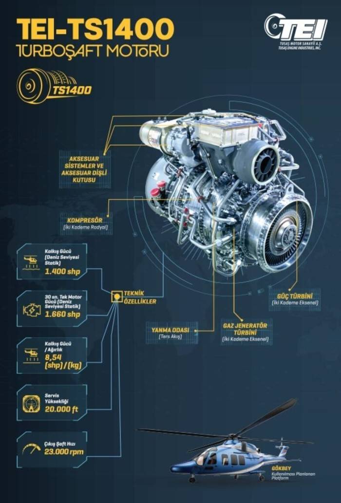 TS1400 motorunu da yaptıklarına belirten Ahmet Kain, "Yerli özgün tasarımımızdır. Şu an en çok yoğunlaştığımız konu o. Onu bitirip seri üretime geçmeyi hedefliyoruz. Önümüzdeki 4-5 sene için çok önemli bir proje olarak görüyoruz. Ondan sonra başka projeler düşünülebilir. Turboşaft motor açısından şu an gündemimizde bir tek bu ürün (TS1400) vardır" açıklamasını yaptı.