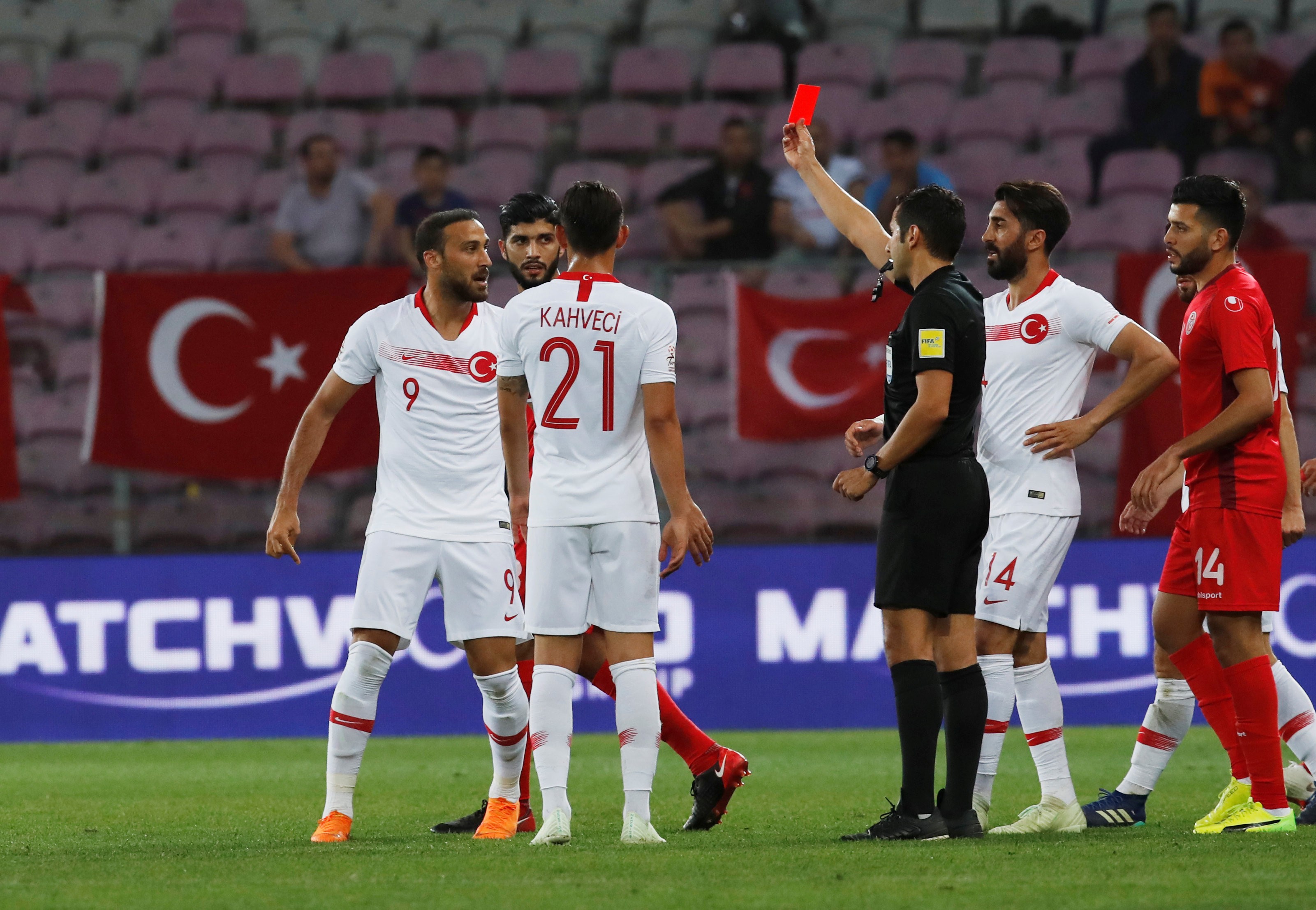 Bunun üzerine Cenk Tosun kırmızı kart görürken, yıldız golcünün ailesinin bulunduğu tribüne TFF'nin özel güvenlikleri gönderildi.