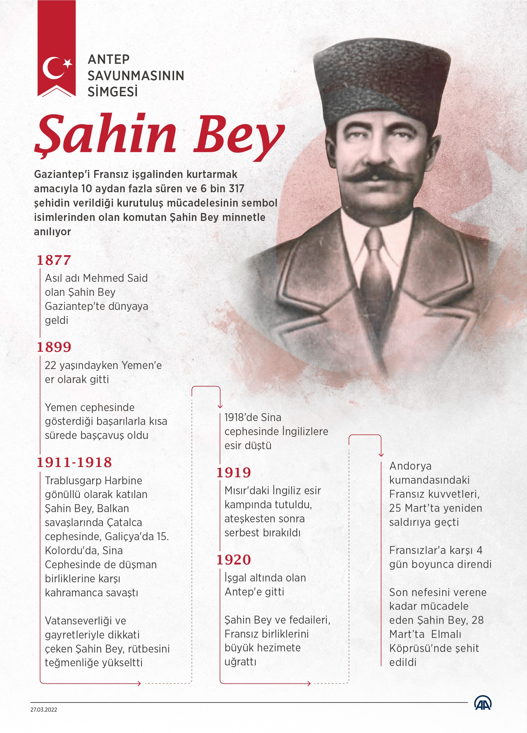 Destansı bir mücadeleye sahne olan Antep savunmasının en önemli isimlerinden Şahin Bey'in vefatının ardından tam 102 sene geçti.