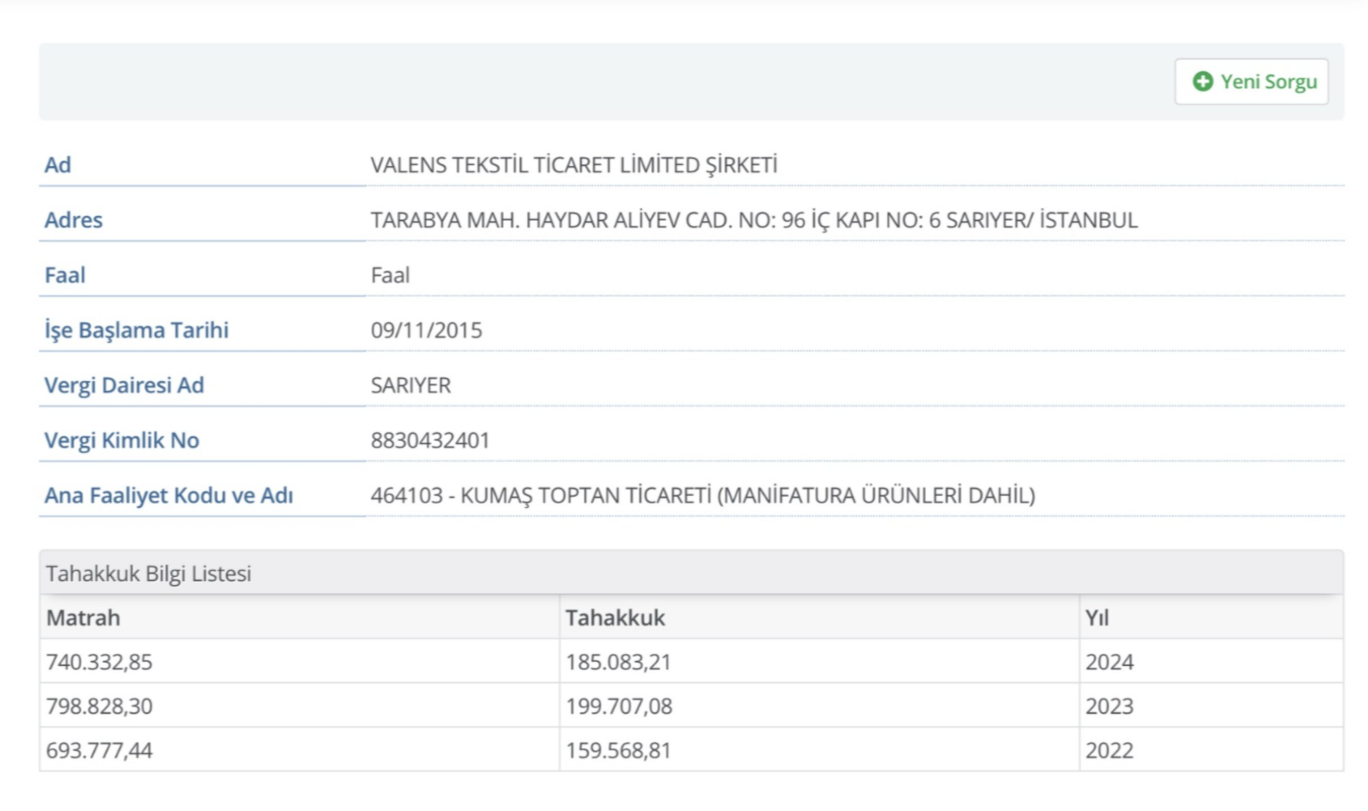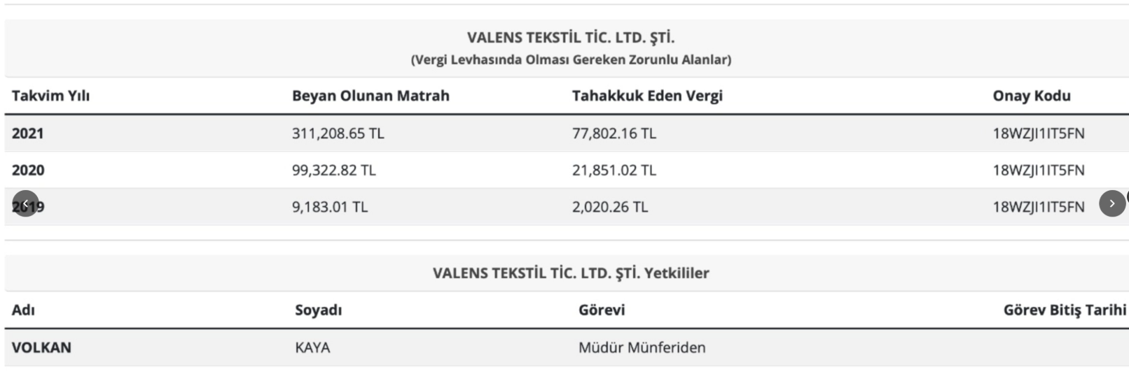 Erciş paylaşımda; Ekrem İmamoğlu'nun akrabası Volkan Kaya'nın sahibi olduğu Valens Tekstil ve Valens Gayrimenkul'un beyanlarına yer verdi.