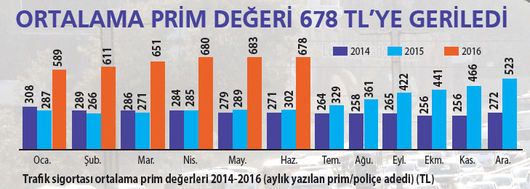 Temmuz ve ağustos ayında 400 liranın altında kalan ortalama primler eylülde 400 lira, aralıkta ise 500 lira sınırını aşmıştı. Hazirandan ağustosa kadar trafik sigortası yaptıranlar 400 liranın altında ve aralık ayına kadar aracını sigortalayanlar ise 500 liranın altında bu işlemi yaptırdığı için bu tutarlar ortalamayı aşağı çekiyor.