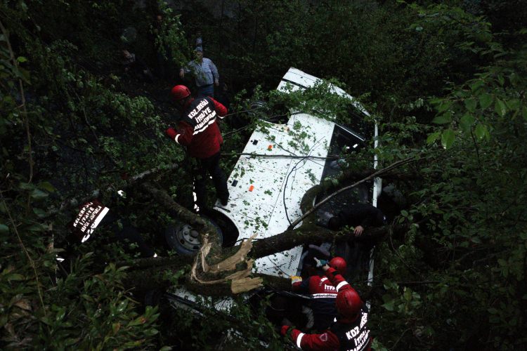 Kazayı gören diğer sürücülerin ihbarı üzerine olay yerine jandarma, AFAD, itfaiye ve 112 Acil ekipleri sevk edildi. Ağaçlık alanda yan yatan midibüse ulaşan ekipler, önce yaralıları yukarıya çıkardı. Yaralanan 16 kişi, ambulanslarla çevredeki hastanelere sevk edildi. Daha sonra midibüsün içinde ve çevresinde yapılan çalışmalarda 5 kişinin cesedine ulaşıldı. Kaldırılan aracın altından da 5 kişinin daha cesedi çıktı. Cesetler, ekipler tarafından güçlükle yukarıya çıkarılarak, morga götürüldü.