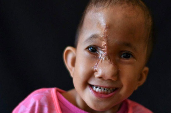 Filipinli Angel, ensefalosel yani beyin anomalisi ile doğduğu için yüzünde büyük bir et parçası vardı.