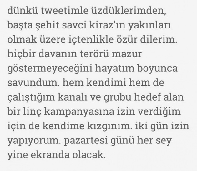 Hem takipçilerinden hem de çalıştığı Doğan Grubu'ndan tepki gören Cabas, yine tweeter hesabından bir açıklama yaparak özür diledi.