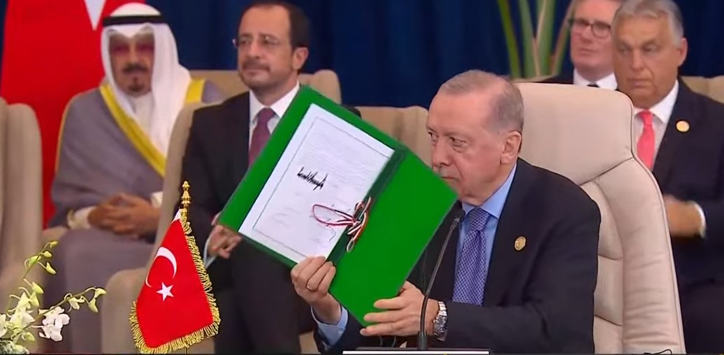 Mısır’ın Şarm Eş-Şeyh kentinde bir araya gelen dünya liderleri, Gazze için düzenlenen Barış Zirvesi’nde "Niyet Belgesi" imzaladı. Zirveye katılan Cumhurbaşkanı Recep Tayyip Erdoğan da belgeye imzasını attı.