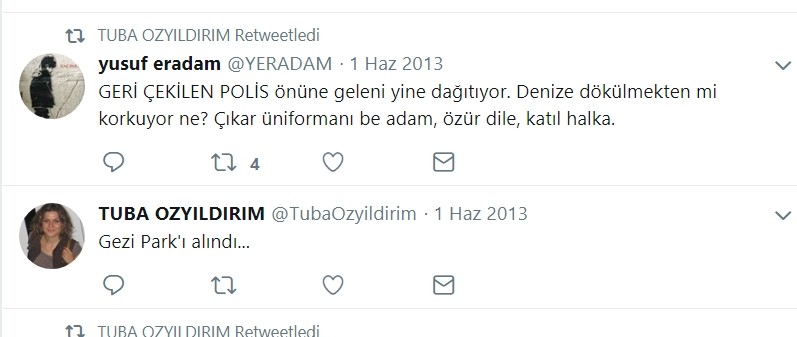 Ken Bradley’in Akit’e yönelik yazılı açıklamasını paylaşan avukatı Tuba Özyıldırım Zara’nın sicilinin de kabarık olduğu belirlendi. Tuba Özyıldırım Zara’nın “twitter.com/TubaOzyildirim” uzantılı sosyal medya adresi üzerinden Gezi kalkışması sürecinde “isyan” paylaşımları yaparak “Gezi Parkı alındı” tweeti attığı, “Geri çekilen polis önüne geleni yine dağıtıyor. Denize dökülmekten mi korkuyor ne? Çıkar üniformanı be adam, özür dile, katıl halka” ifadelerini paylaştığı tespit edildi. PKK’nın siyasi uzantısı HDP’ye övgüler düzdüğü belirlenen Bradley’in avukatı Özyıldırım’ın, PKK’nın paravanına dönüşen Cumartesi Anneleri’ne destek tweetleri attığı kaydedildi.