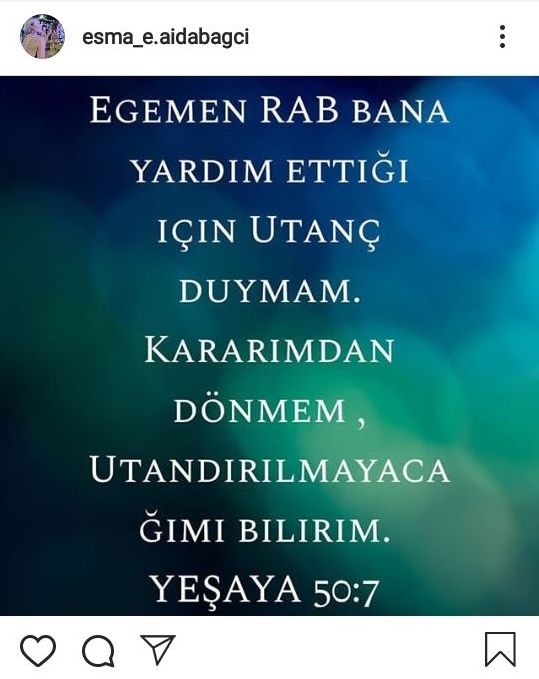 Atatürk İlahiyat Fakültesi mezunu olan Esma B.K.,'nin 15 Temmuz darbe girişimi sonrası görevden alındığı ancak daha sonra göreve iade edildiği belirtildi.