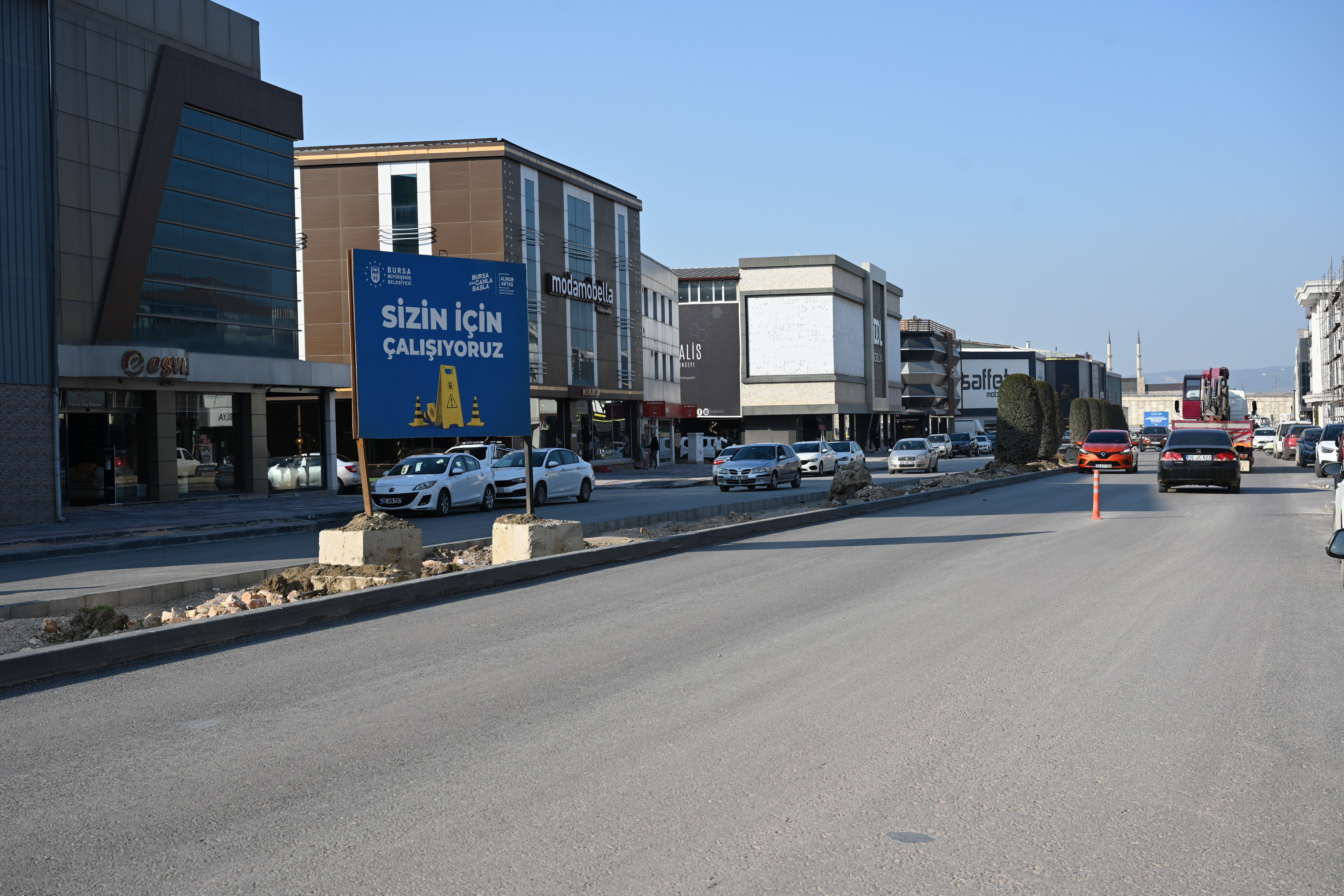 Türkiye’nin en önemli mobilya üretim ve satış merkezi olan Bursa'nın İnegöl ilçesinin kalbi konumundaki Ertuğrulgazi Caddesi’nde çalışmaları aralıksız sürdüren Bursa Büyükşehir Belediyesi, kısa süre içerisinde esnafın ve vatandaşların daha konforlu ortamda buluşabileceği alanlar kazandırmış olacak.