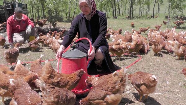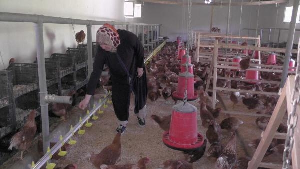 Muş'un merkez Akpınar Köyü'nde eşine ait araziye tavuk çiftliği kuran Moldavalı gelin Melike Aşar, organik tavuk ve yumurta üretimi yapıyor.