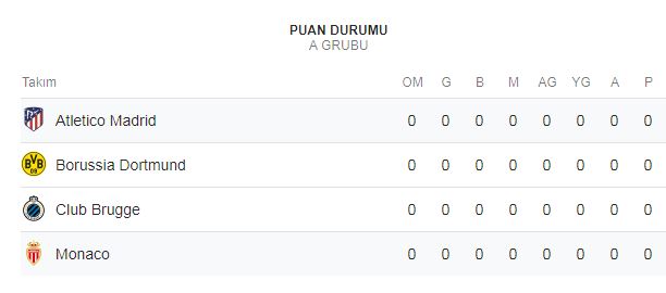 UEFA Şampiyonlar Ligi A grubunda bulunan takımlar şunlar: