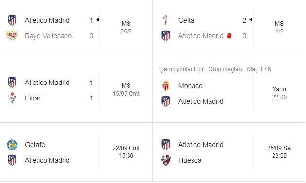UEFA Şampiyonlar Ligi A grubunda Monaco - Atletico Madrid karşı karşıya gelecek. Wanda Metropolitano Stadında oynanacak Monaco - Atletico Madrid maçının başlama saati 22:00