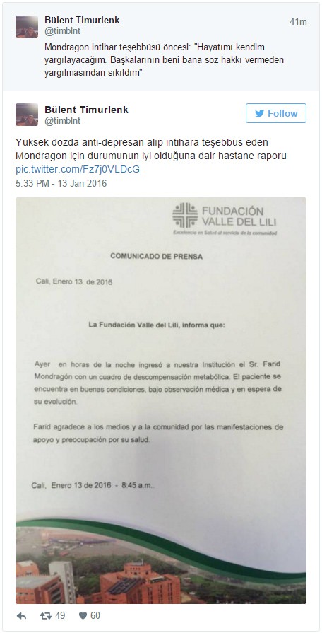 Eşiyle boşanma aşamasında olan Kolombiyalı efsanenin depresyonda olduğu belirtildi. Haberin duyulmasıyla birlikte pek çok spekülasyon da peşi sıra geldi. Durumunun ağır olduğundan, öldüğüne kadar sosyal medyada haberler yer alsa da Mondragon’un yüksek gözlem altında tutulduğu ve durumunun iyi olduğu açıklandı.