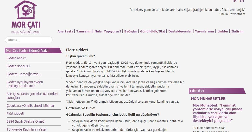 Eşcinsel savunucusu Mor Çatı, “aileyi yıkma projesi” olarak tepki çeken Toplumsal Cinsiyet Eşitliği faaliyetleriyle toplumu zehirlemeye devam ediyor. İnternet sitesinde “Flört şiddeti” başlığı altında sözde kadına şiddet konusunu anlatan Mor Çatı’cılar, Flört yaşını 13-23 olarak tanımlarken, “cinsel şiddet” başlığı altında gayrı meşru ahlaksızlığın şiddet içermediği sürece normal olduğunu yazdılar. 16 yaşında evlenen erkeklere “tecavüzcü” damgası vuran Mor Çatı ve benzeri sözde STK’lar, nikahsız ilişkide ise 13 yaşı “Flört” adı altında meşru göstermeye kalktılar.