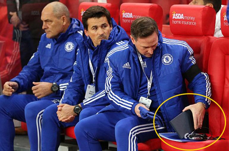 Jose Mourinho'nun verdiği talimatlar Steve Holland (sağda) tarafından oyunculara iletildi. Chelsea Kulübü yetkilileri cezası nedeniyle stada girmesi yasak olan Mourinho'nun, maçtan önce otelde futbolcularına son bir konuşma yapıp, karşılaşmayı otelden izlediğini söylediler. Ancak, Mirror gazetesinde yayımlanan görüntüler bunun da doğru olmadığını ortaya koydu...