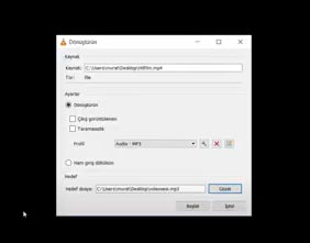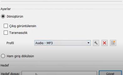 Profil kısmına Audi mp3’ü seçtikten sonra hedef dosya kısmına masa üstünü ismi belirlendikten sonra kaydet denilir. Daha sonraki süreç ise Başlat seçeceği tıklanır.