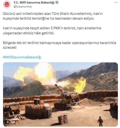 Milli Savunma Bakanlığı, Suriye'nin kuzeyinde tespit edilen 5 PKK/YPG'li teröristin etkisiz hale getirildiğini bildirdi.
