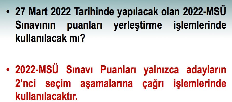 2’nci Seçim Aşamalarına Çağrı Puan Türü KHO 2022-MSÜ Sayısal Puanı