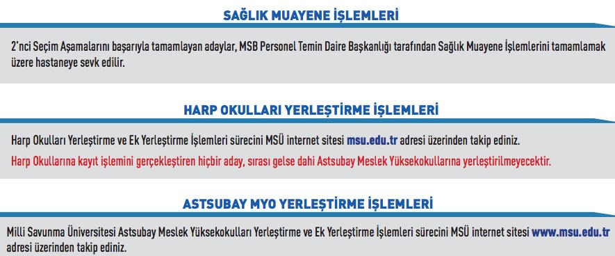 Harp Okulları ve/veya Astsubay Meslek Yüksekokulları seçim aşamalarına katılarak, bu aşamaların herhangi birinde elenmek/ayrılmak, diğer yükseköğretim programları için kayıt yaptırmaya engel oluşturmayacaktır.