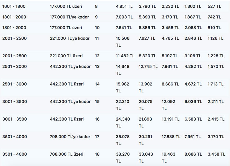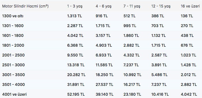 2022 Motorlu taşıtlar vergisi fiyatları aşağıdadır: