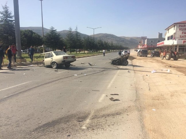 Çarpışmanın etkisi ile savrulan otomobillerden birisi orta refüje çarptıktan sonra ortadan ikiye bölündü.