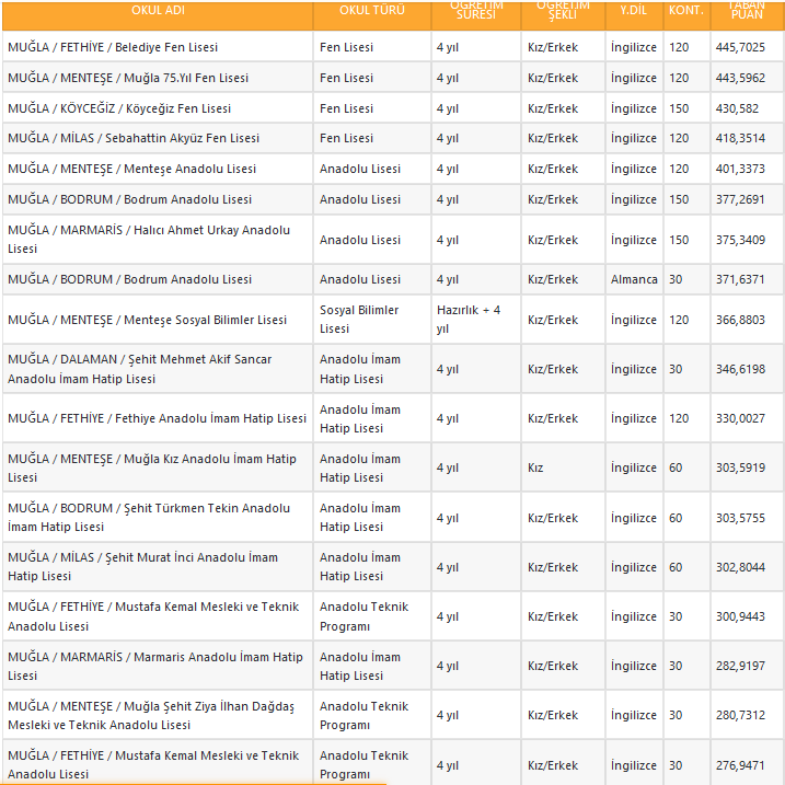 Muğla liseleri taban puanı ve yüzdelikleri için tıklayınız...