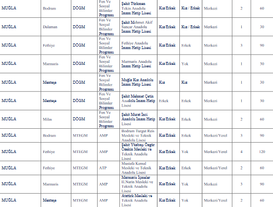 Muğla liselerinin kontenjan kapasitesi ne kadar?
