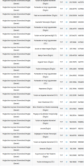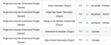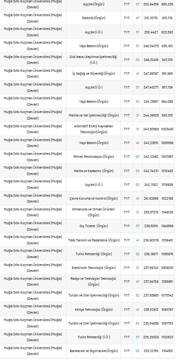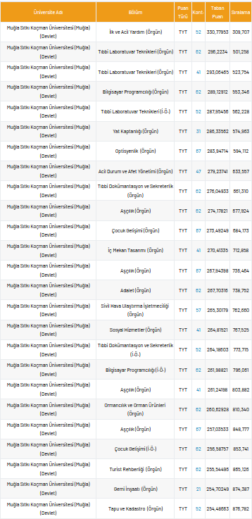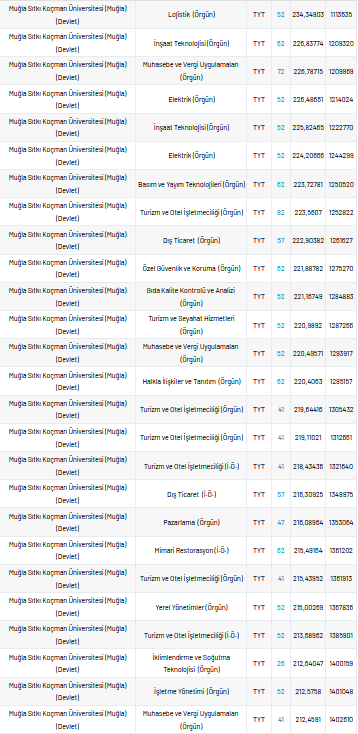 Muğla Sıtkı Koçman Üniversitesi 2 yıllık taban puanları 2021 yüzdelik dilimleri ve kontenjan sayıları kaçtır?