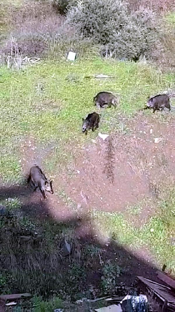Muğla'nın Marmaris ilçesinde aç kalan yaban domuzu sürüsü, yiyecek bulmak için şehir merkezine indi.