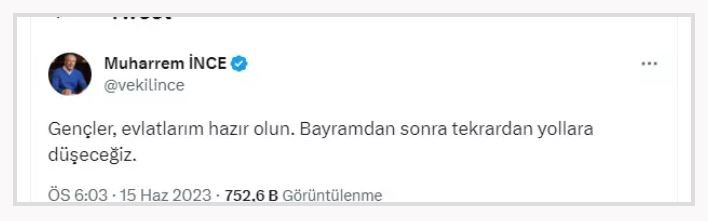 İnce, “Gençler, evlatlarım hazır olun. Bayramdan sonra tekrardan yollara düşeceğiz” ifadelerini kullandı
