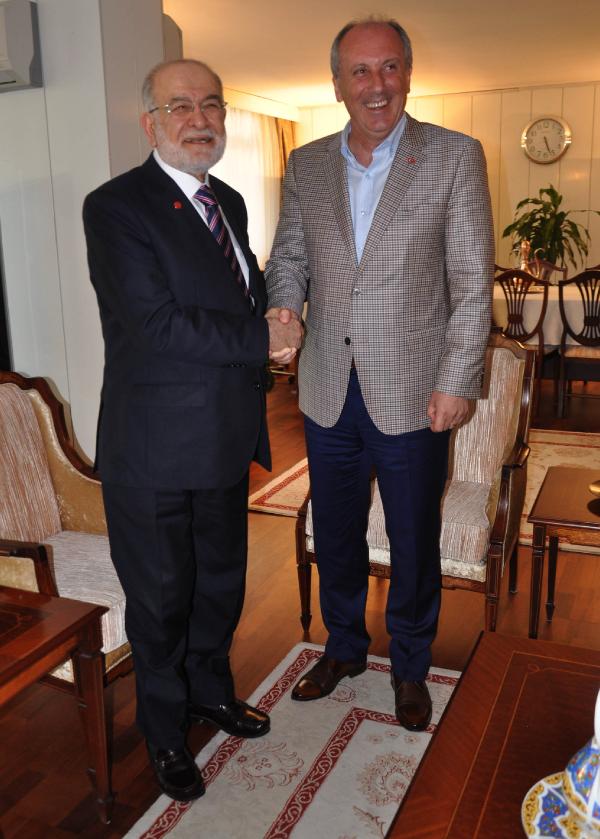 CHP'nin Cumhurbaşkanı adayı Muharrem İnce, Cumhurbaşkanı adayları ziyaretleri kapsamında ilk olarak Saadet Partisi (SP) Genel Başkanı ve Cumhurbaşkanı adayı Temel Karamollaoğlu'nu ziyaret etti.
