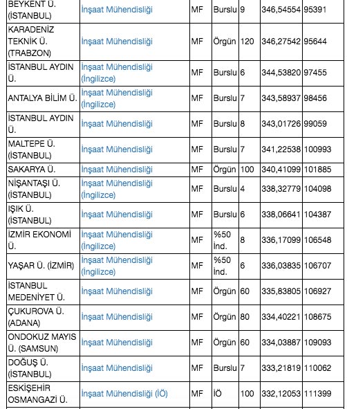 AKSARAY ÜNİVERSİTESİ İnşaat Mühendisliği taban puanları