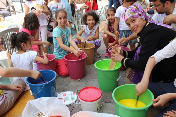 Esenler'deki savaş mağduru mülteci çocuklar, Esenlerli arkadaşlarıyla birlikte Çocuk Sokağı ve Anne Çocuk Kampüsü'nde düzenlenen 20 Haziran Dünya Mülteciler Günü Çocuk Şenliği programında doyasıya eğlendiler.