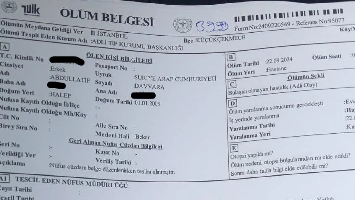 21 Eylül’de İstanbul-Gaziosmanpaşa’da bir oyun parkında arkadaşlarıyla oyun oynarken maskeli iki kişi tarafından saldırıya uğrayan 15 yaşındaki Abdullatif Davvara, hayatını kaybetti.
