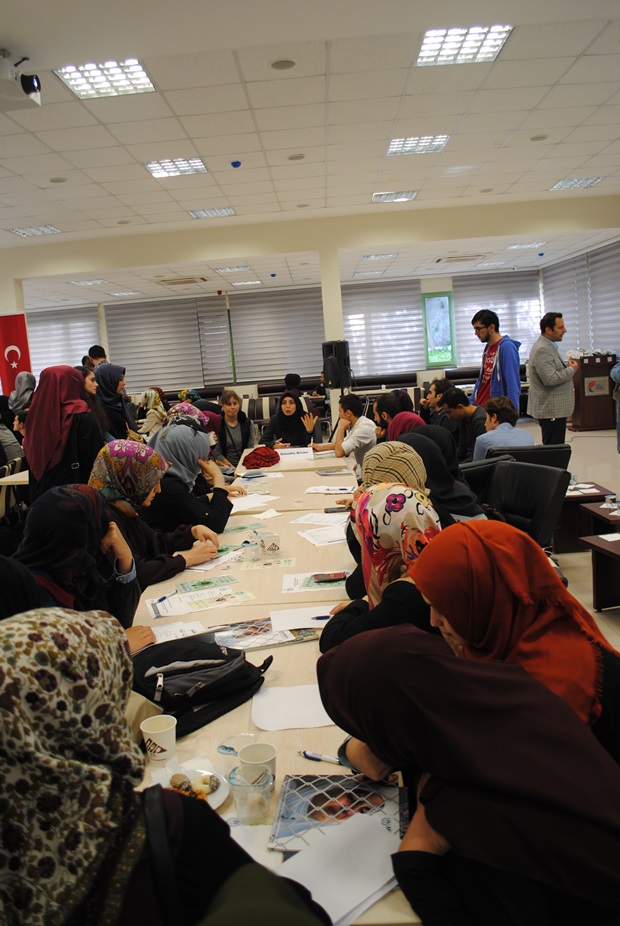 Avukat Yıldırım'ın Mülteciler hakkındaki uzunca bilgilendirme konuşmasının ardından Dernek bünyesinde oluşturulan komisyonların ilgili başkanları tarafından tanıtılması sonrası gençler gruplara dağıldı ve program özel masalar etrafında devam etti.
