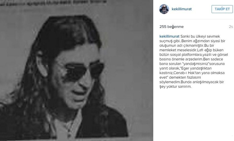 Yeni Yüzyıl Gazetesi'ne röportaj veren şarkıcı Murat Kekilli yandaşlık sorusuna "Eger yandaşlıktan kastınız, Cenab-ı Hak'tan yana olmaksa evet" demesinin ardından gelen tepkilere yanıt verdi.