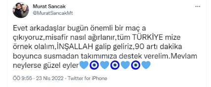 Kritik maç öncesi Twitter hesabından paylaşımda bulunan Adana Demirspor Kulüp Başkanı Murat Sancak, mavi şimşeklere misafirperverlik çağrısı yaptı.