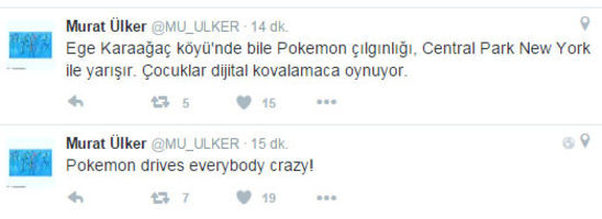 İlk tweetinde Pokemon çılgınlığına dikkat çekerek; 'Pokemon drives everybody crazy' derken, hemen ardından attığı tweetle İzmir Buca'daki Karaağaç Köyü ile New York Central Park'ı karşılaştırdı. Şu tweeti attı: