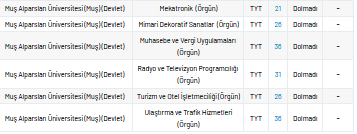Muş Alparslan Üniversitesi 2 yıllık taban puanları 2021 yüzdelik dilimleri ve kontenjan sayıları kaçtır?