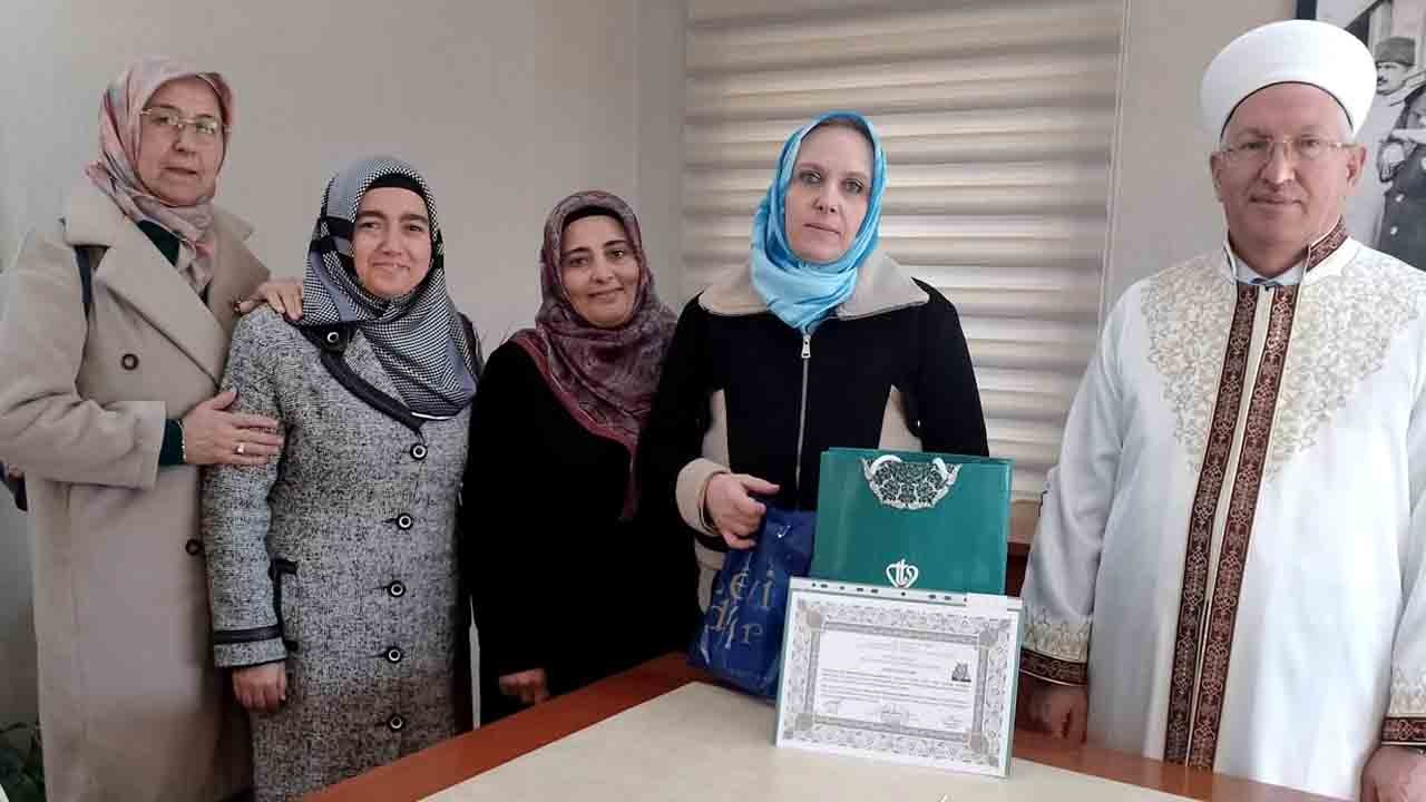 Başar eşliğinde kelime-i şehadet getiren Struss, 'Elif' ismini aldı kendisine Kur'an-ı Kerim ve Almanca meali hediye edildi.
