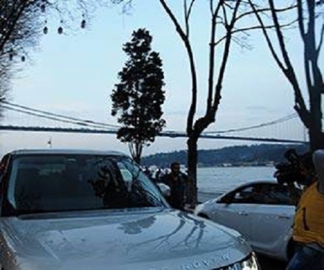 Rumelihisarı'nda sahil trafiğinde görüntülenen ünlü sanatçı, kendisini görüntüleyen kameramanın arkasından hızla otobüsün geldiğini söyleyerek hayatını kurtardı.