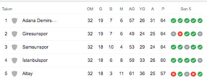 Mustafa Denizli'nin imzayı attığı Altay'ın 57 puanı bulunmakta.