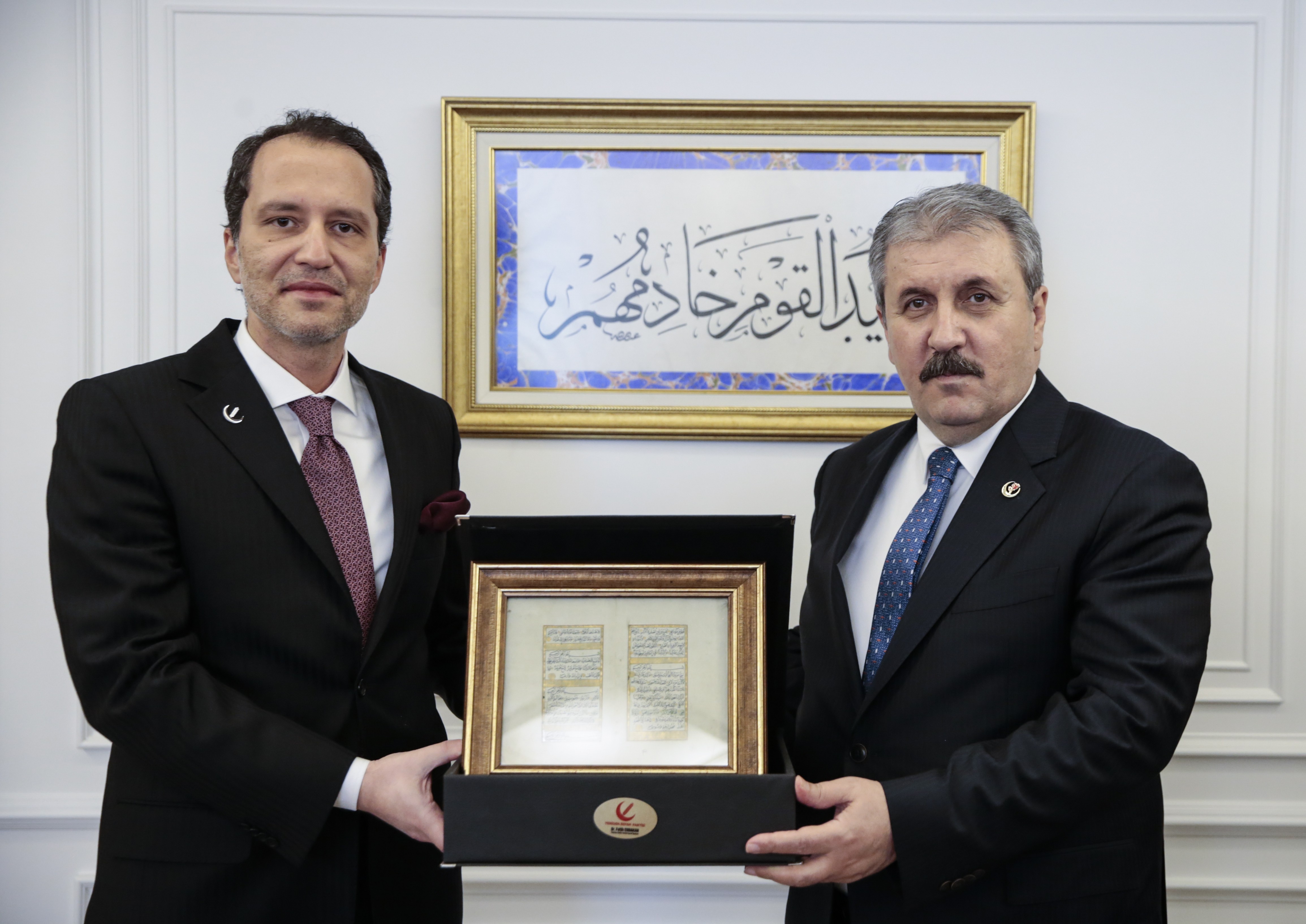 Büyük Birlik Partisi (BBP) Genel Başkanı Mustafa Destici, beraberindeki heyetle Yeniden Refah Partisi Genel Başkanı Fatih Erbakan'a hayırlı olsun ziyaretinde bulundu.